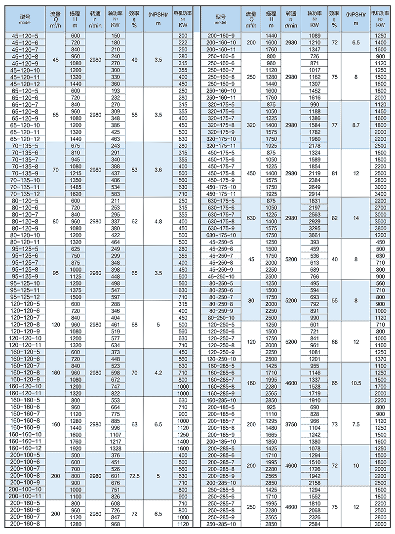 DOBB5雙殼體多級(jí)泵性能參數(shù)表