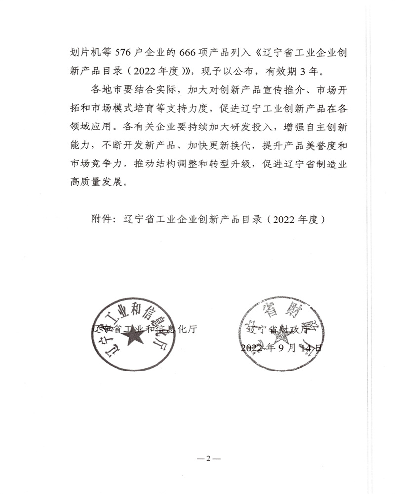 2022年10月,遼寧德蒙特科技有限公司創(chuàng)新產品--超臨界氧化減泥泵,該產品成功列入2022年度遼寧省工業(yè)企業(yè)創(chuàng)新產品目錄。